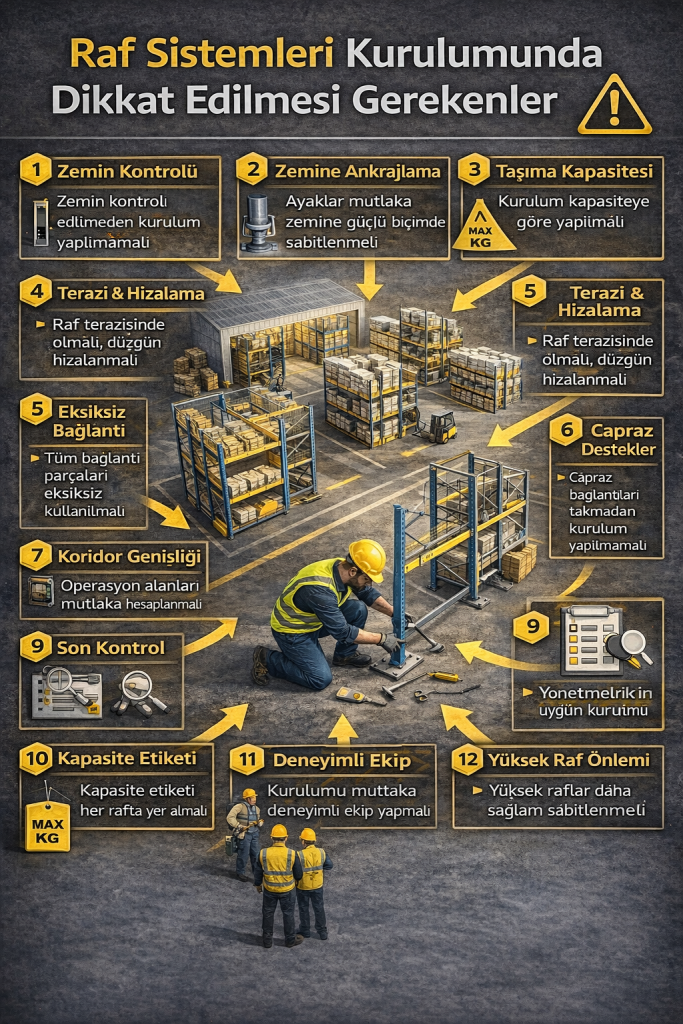 Bu nedenle kurulum süreci, raf sisteminin ömrünü ve güvenliğini belirleyen en önemli aşamadır.